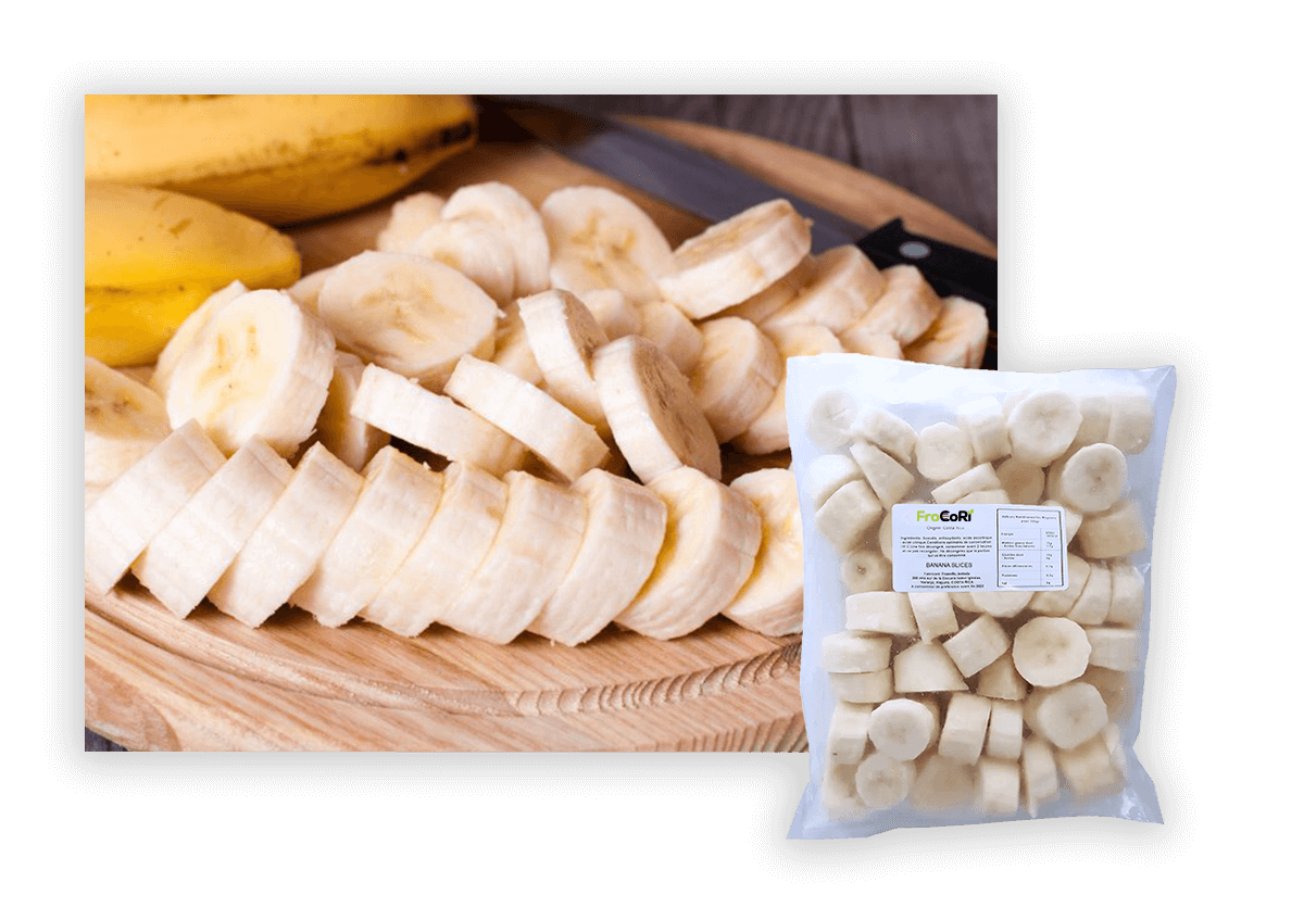 El banano congelado FrostFreeFreezing ® mantiene el sabor intacto durante el proceso y no se oxida al descongelar. Es ideal para ser usado en helados como acompañantes o simplemente ensaladas de frutas.