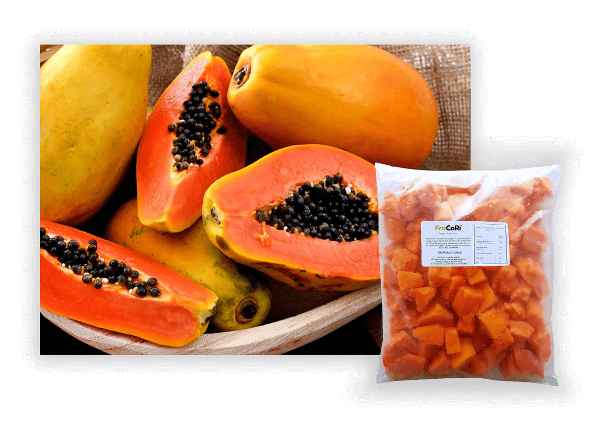 La papaya que hay en Costa Rica es conocida como papaya perfecta. Es una fruta perfumada, de color intenso, sabor dulce y un tamaño conveniente que no puede faltar en la dieta familiar. Frozen Costa Rica tiene la mejor papaya congelada por su sistema FrostFreeFreezing ®